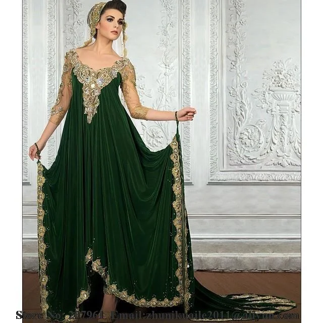 2017 New Middle East Design Green Evening Dresses Appliques beaded Dubai Arabic Prom Dresses Vestidos Abaya